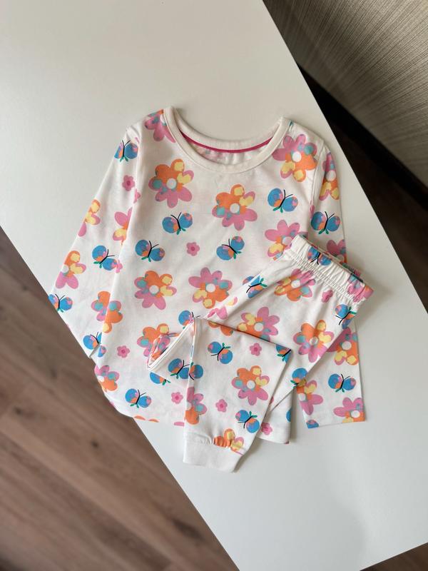 Нова піжама з набору на дівчинку в квітки та метелики на дівчинку від George, розмір 2/3 роки (92/98 см зріст). Кофтинка: довжина 39,5 см, рукав від плеча 35 см. Штанці: довжина 55 см, крок 35,5 см.