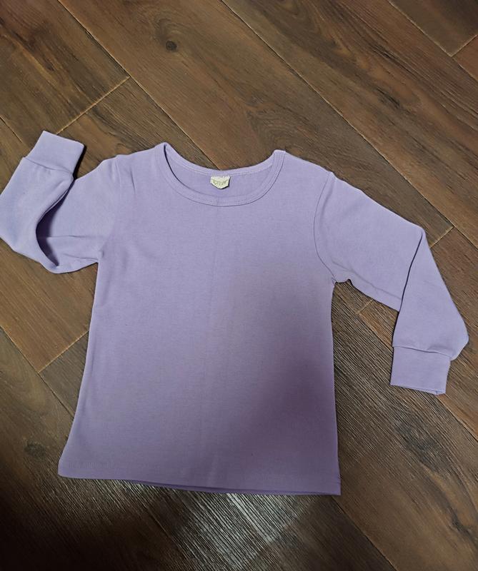 Двойной эластичный трикотаж, хорошо тянется (при необходимости), приятная и мягкая к телу. Длина изделия 41, плечи 26+, обхват тела 56+, длина рукава 33. Приятный сиреневый цвет, как на фото с размером.