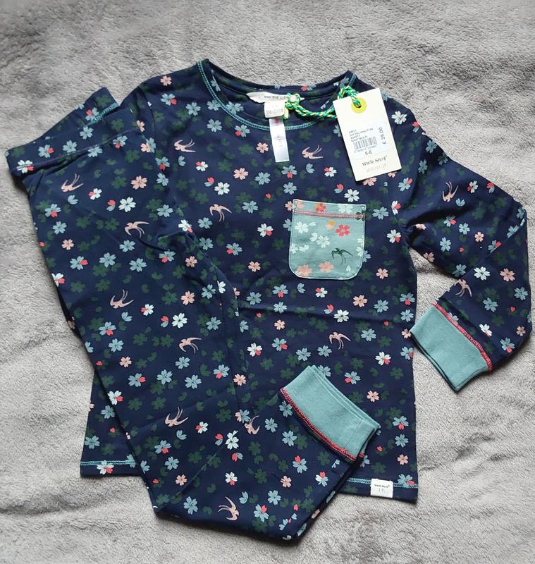 Піжама на дівчинку 5-6 років, зріст 110-116 96% бавовна+4%еластан Англійський бренд White stuff, виготовлено в Індії Якісний пошив Верх: ПОГ 33см, довжина 40см, рукав від горловини 45см Штани: довжина 65см, внутрішній шов 47см, стегна 29см