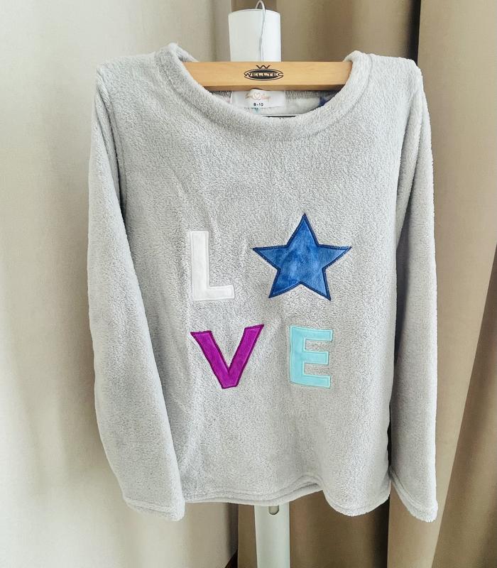 Тепла флісова піжамна кофта для дівчинки 8-10 років у відмінному стані. Довжина 62, пог 45 ,довжина рукава від горловини 65см.