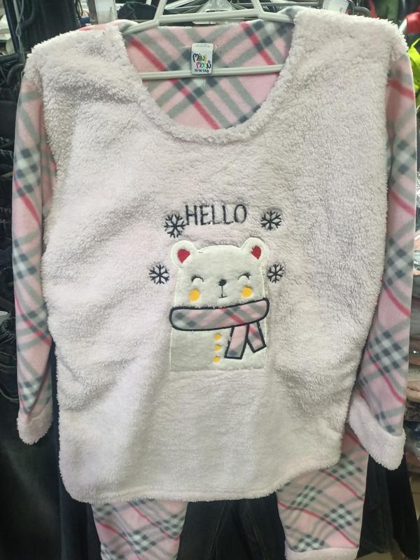 тепла піжама для дівчаток. в комплект входить кофта і штани. рукава кофти на манжетах, штани на резинці, знизу на манжетах. м'якенька і тепленька. виробництво Туреччини.