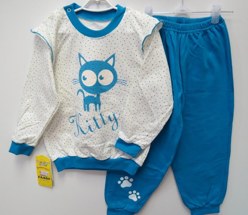 Дитяча піжама для дівчинки *Кітті* Тканина: байка вищої якості Розмір: 98,104 см розмір 98: штанці довжина виробу по боковому шву – 55 см, кроковий шов – 40 см, глибина посадки – 19 см, ширина виробу – 40 см, джемпер: довжина виробу від плеча по боковому шву – 43 см, ширина виробу – 35 см, довжина рукава – 36 см, розмір 104: штанці: довжина виробу по боковому шву – 59 см, кроковий шов – 43 см, глибина посадки – 21 см, ширина виробу – 41.5 см, джемпер: довжина виробу від плеча по боковому шву – 45 см, ширина виробу – 36 см, довжина рукава – 38 см,