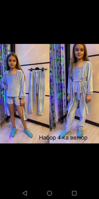 ✔ Это нечто! Супер комплект для девочек! Велюр! Качество- супер! Комплект из 4 ед: – халат – штаники – майка – шорты * расцветки ассорти (малина, розовый, пудра, бардо) ✔ Размеры: 60 (98-104)-майка дл 35,шорты дл22, штаны61/37, халат рук28,дл 59 64 (110-116)-майка дл 38,шорты дл23, штаны67/47, халат рук31,дл 64 68 (116-122)-майка дл 41,шорты дл25, штаны77/57, халат рук34,дл 74 72(122-128)-майка дл 45,шорты дл27, штаны82/59, халат рук37,дл 78 76(128-134)-майка дл 47,шорты дл29, штаны91/67, халат рук40,дл 81 80 (134-140)-майка дл 47,шорты дл29, штаны92/67, халат рук44,дл 87 ✔ Цена:400 грн