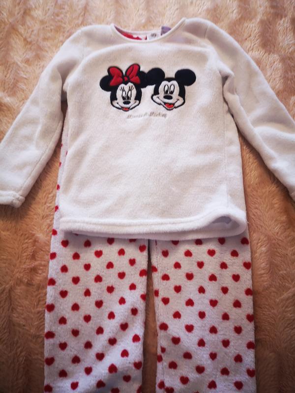 Теплая раздельная пижама на девочку 5-6 лет, пижама Минни Маус рост 116 см, штаны внешний шов 61,внутренний шов 38см.Кофта:длина спереди 37,сзади 42,рукав 38см,ширина 32