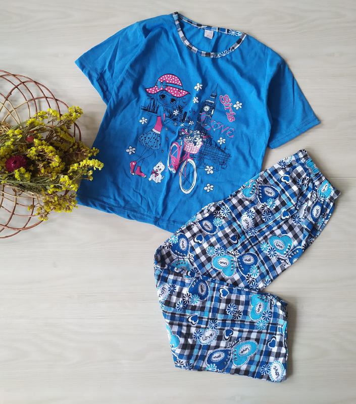225 грн піжамка для дівчаток тканина котон 100% Турція р11-12 -1шт заміри 11-12: довжина футболки 51см, пог 39див, довжина штанів 74см/ крок 49см допустимо+-1см