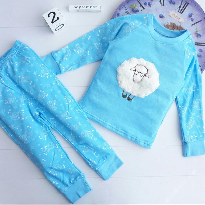 295 грн Пижама ⭐Материал: интерлок(100% хлопок) ⭐Дополнительно :рисунок нашивка ⭐Производитель :Украина р.86-длина от горловины 32 см /рукав 31 см/длина штанишек 42 см/шаг 24 см-1шт