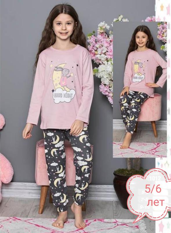 Пижама для девочек 5/6лет Кофта длина 48, плечи 29,5см, подмышками 32,5см, рукав от плеча 38. Штаны длина 67,5см, шаговый 46, резинка 22 тянется хорошо, посадка перед 22, зад 24, бедро 37