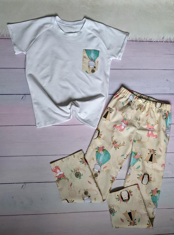Мила, легка бавовняна піжамка з милим принтом! Зручна трикотажна кофтинка і легкі штанці з бавовни. Матеріал штанів - 100 % бавовна, сатин. Футболка - стрейч кулір, 95 % бавовна. Дуже гарна якість! Розміри: 116-122 (довжина футболки 47 см, довжина штанів 72 см) 122-128 (довжина футболки 49 см, довжина штанів 76 см) 128-134 (довжина футболки 51 см, довжина штанів 78 см) 134-140 довжина футболки 52 см, довжина штанів 80 см) Ціна вказана за найменші розміри!!!