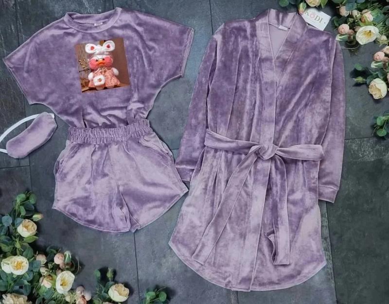 🎀Солодкі сни Гарантовано!💞 👑Чудовий зручний приємний до тіла домашній комплект з LALAFANFAN 👑 ❤️🔥В набір входить: 1️⃣Халат з поясом 2️⃣Футболка 3️⃣Шортики 4️⃣Маска для сну. 💚Тканина розкішний, м'який, приємний до тіла віллюр плюш високої якості.👍🏻👍🏻👍🏻 💚Розміри: 140,146,152,158 Ціна 580 грн Заміри довжина халата/рукав від плеча/довжина футболки/пог/довжина шорт /побіди/пояс 140 р-79\49\51\40\26\41\25 146 р-82\51\53\42\26\43\26 152 р-84\52\55\43\26\45\27 158 р-85\53\55\44\26\45\28