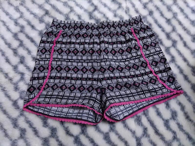 Шортики для сна для девочки Primark. Размер - 11/12 лет - 152 см. Замеры: ширина по резинке в спокойном состоянии 32 см, тянется до 43 см, высота посадки 32 см. Cостав: 100% вискоза. Состояние хорошее
