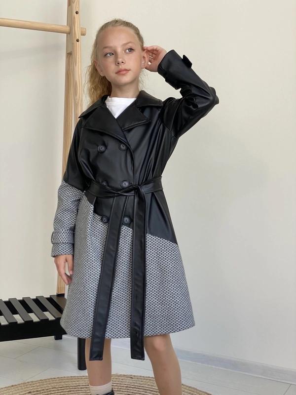 Дуже стильний Тренч поєднання еко шкіри та шерсті Каміла люкс якості на підкладці та гудзиках є пояс ціна 1050 Заміри від горловини Довжина/рукав/пог 128-72/51/40 134-79/54/43 140-85/57/44 146-91/60/45 152-96/63/46