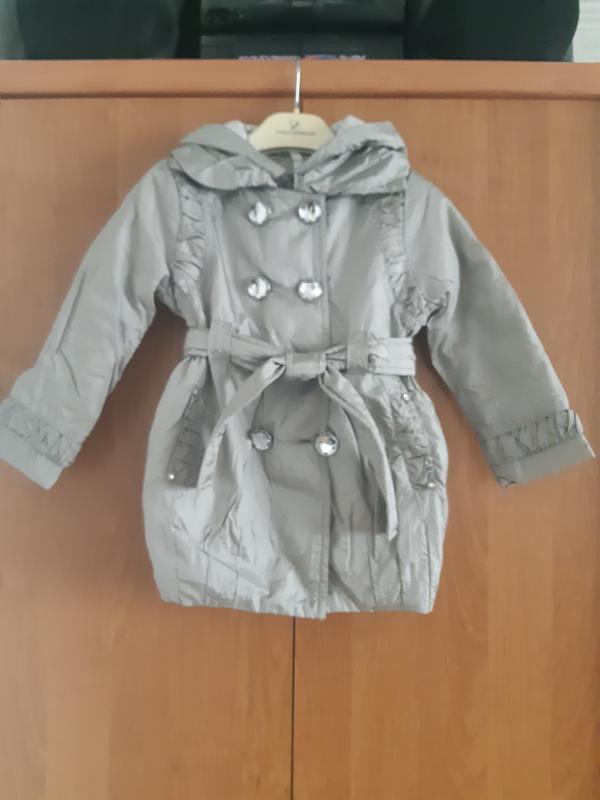 Новий плащик на дівчинку сірого кольору з капішоном який знімається .Польського виробництва mariguita склад тканини верх 100%нейлон підкладка 100%котон тонка набивка 100%п/є заміри ріст 0.92см ширина плеча 28 см довжина рукава від плеча 35 см пог 35 см довжина плащика 48 см