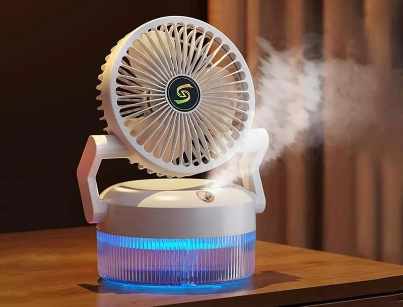 Розширені особливості: Інноваційна 4-ступенева система розпилення — генерує дрібнодисперсний туман, ефективно знижуючи температуру повітря поруч з вами 3 швидкості обдуву — регулюються залежно від потреби: для дитини, сну або активного охолодження Нічник Ambient Light — м’яке підсвічування додає затишку у поїздках, кемпінгу чи вдома Поворот на 180° — можливість спрямувати повітряний потік у потрібну зону Характеристики: Тип: портативний вентилятор із зволоженням та підсвічуванням Матеріал: ABS + PP Колір: білий/зелений Режими обдуву: 3 Кут нахилу: до 180° Живлення: 5V, 1.5A Потужність: 7.5 Вт Об’єм резервуару: 300 мл Інтенсивність розпилення: 30–50 мл/год Акумулятор: 1200 мАг Розмір: 16,1 × 16,1 × 14,7 см Зарядка: Type-C Переваги: Функція 2-в-1: охолодження та зволоження — вентилятор не просто створює потік повітря, а й додатково зволожує його завдяки вбудованій системі дрібнодисперсного розпилення. Це дозволяє підтримувати комфортний мікроклімат у приміщенні та запобігає пересиханню шкіри у спекотні дні. Ідеальний варіант для подорожей — складаний корпус, мала вага та автономна робота від акумулятора роблять вентилятор чудовим супутником у поїздках, на пікніку, на пляжі, в потягу чи кемпінгу. Він легко поміщається у рюкзак або валізу та не потребує постійного підключення до електромережі Максимальна універсальність — пристрій підходить для використання в найрізноманітніших умовах: вдома, в офісі, на дачі, в автомобілі або навіть під час відпочинку на природі. Регульований кут нахилу та різні режими роботи. Економічність та безпека — вентилятор працює з мінімальним споживанням енергії, а режим м’якого обдуву робить його абсолютно безпечним для дітей, забезпечуючи делікатну циркуляцію повітря без різких перепадів температури та шуму