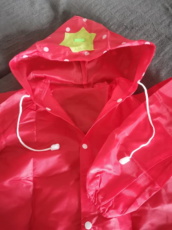 Плащик с глубоким капюшоном, застегивается на 4 пластиковых кнопки. Два накладных кармана Дождевик из винила (ПВХ) можно одевать не только во время дождя но и просто в любой пасмурный день. Абсолютно водонепроницаемый. Длина по спинке 66см, ПОГ 48см, длина рукава от капюшона 56см. Очень яркий,нарядный. Отвечу на все вопросы, пишите.