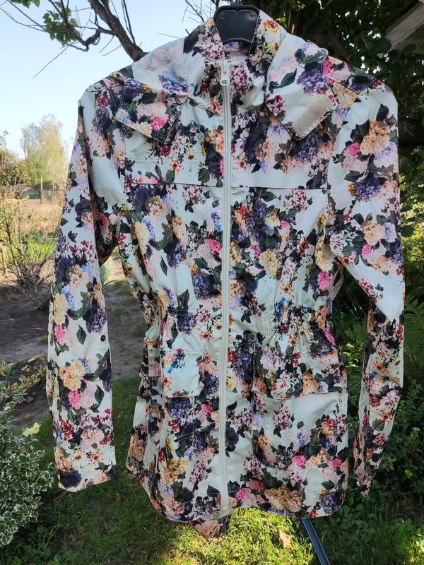 Легкий плащ,без підкладки ,з капюшоном та карманами,на талії резинка,рукава можна завернути та зафіксувати кнопкою.