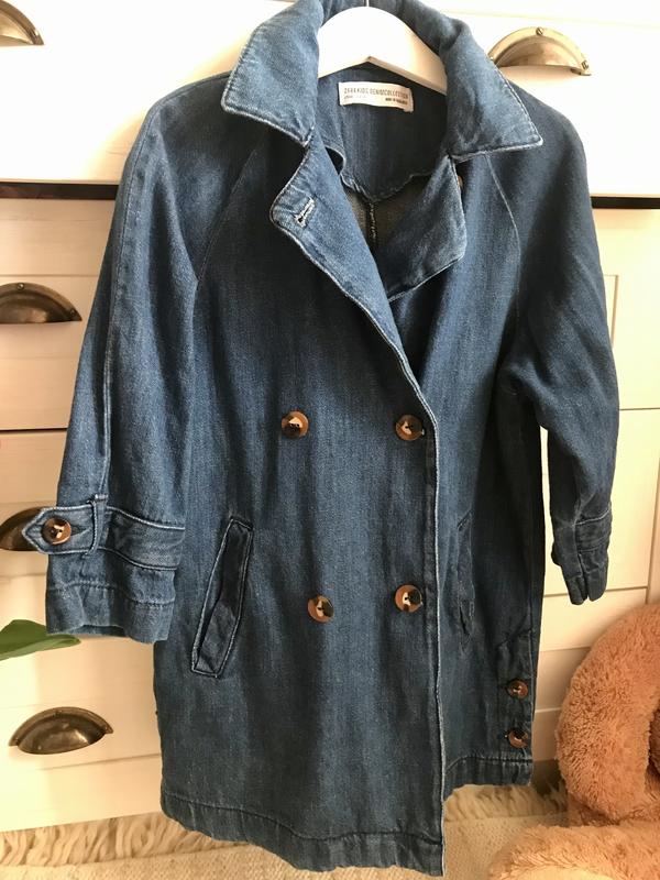 Джинсовий плащ/ тренч фірмиZara двостороннє застібання, насиченого синього кольору.6років