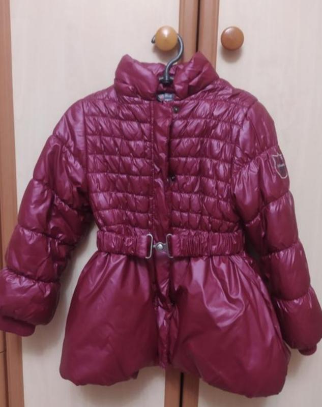 Куртка на дівчинку зимова з поясом,по бірці 116 см,але буде десь з 3 до 5 рочків.Від плеча до низу-50 см.Утеплювач мягесенький,дуже приємний до тіла.