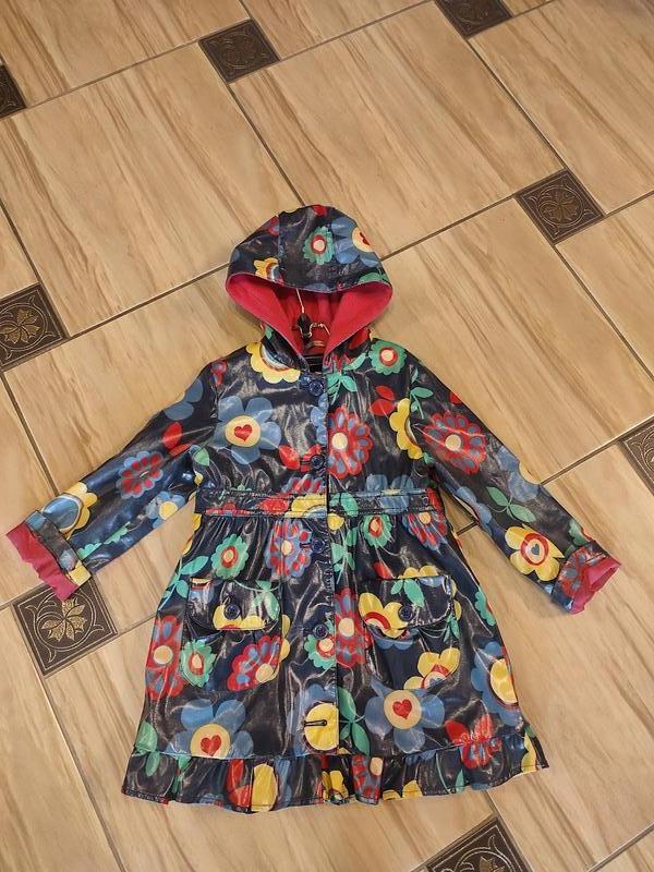Плащик дуже красивий, яскравий, має дуже ефектний, зупинений вигляд, дитина в ньому, як лялечка! Він дуже якісний, верх водонепроникний, підкладка утеплена, флісова, дитині в ньому дуже комфортно та затишно. Гарний бренд, гарна якість, у гарному стані, у деяких місцях є потертості, але вони зовсім не впадають в око за його яскравого забарвлення, якщо тільки добре придивитися, у ціні все враховано. Відчепіть і ще продасте. Рекомендую на 4-6 років, орієнтуйтеся на мене: НОГ-34, НОТ-34, довжина — 57, рукав-40. Оплата на картку приватбанка, відправка будь-яким поштовим перевізником. Жодних інших способів пересилання та оплати немає. Перед купівлею уточнюйте наявність і умови пересилання.