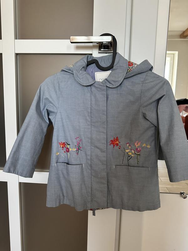 Продам плащ непромокайку. Попереду є 2 кармана, капюшон не зйомний, підкладка бавовняна, дуже гарна вишивка. Застібається на блискавку та кнопки. Розмір 3-4 роки, 104 см зріст.
