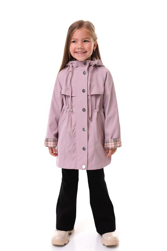 Це те, що точно тобі знадобиться! Плащ "Міхаела" повсякденного призначення, трапецієвидного силуету з фігурним низом. Пілочка з рельєфами від горловини та відлітною кокеткою. Спереду є бічні прорізні кишені з двома фігурними листочками. Спинка з рельєфами від горловини та відлітною кокеткою, яка знизу середнього шва має розпірку. По лінії талії по бочках пілочки і спинки є внутрішня куліска, яка дозволяє регулювати приталеність виробу по талії. Виріб на підкладці. Розміри: 98, 104, 110, 116, 122, 128