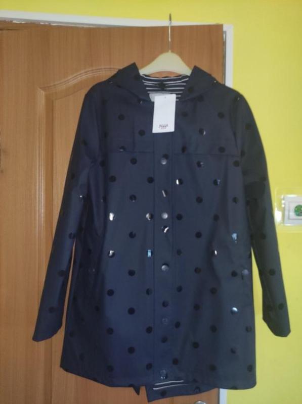 Прогумований дощовик, вітрівка з капюшоном на котоновой підкладці німецького бренда. Приємні на дотик матеріали. Якість супер. На вік 10-14, орієнтуйтесь по замірам. Довжина по спинці 76 см,довжина рукава від плеча 61см, НапівОбхватГрудей 49см.Новий!