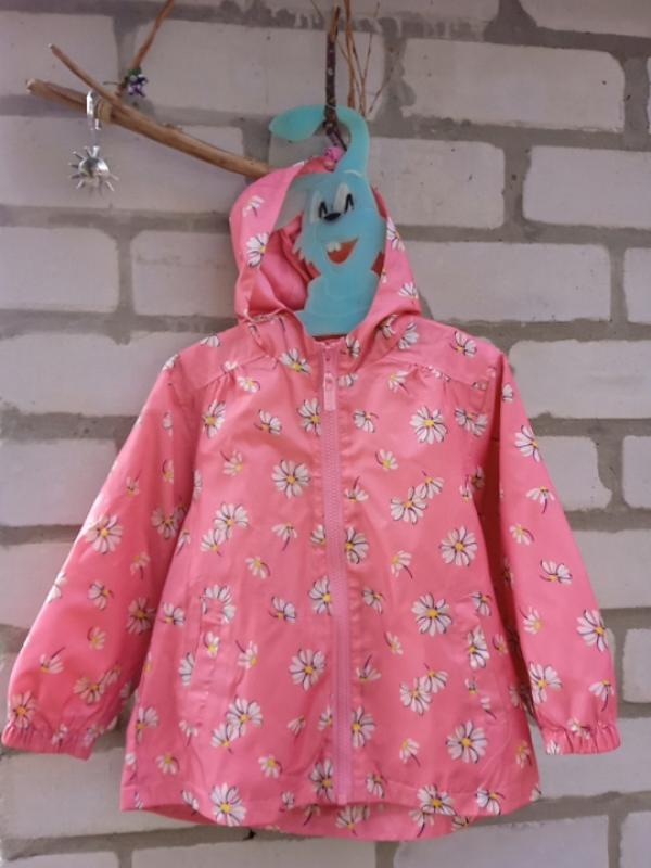 3-4р, на підкладці з картону, кишені бокові, глибокий капішон, ззаду на спині велика кишеня кенгуру на липучці, стан дуже хороший, єдине це царапинка на замку мала, на фото показано