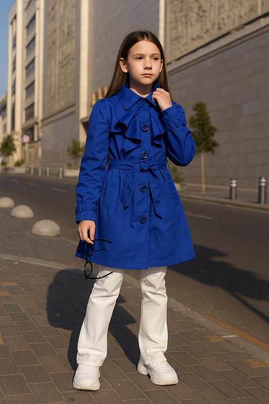 Дитячий тренч George кольору електрик Вік 12-16 років 80% поліестер 20% бавовна 100% поліестер UK 6 EUR 34 ПОГ 44 см ПОТ 36 см Довжина 70 см Довжина рукава 55 см