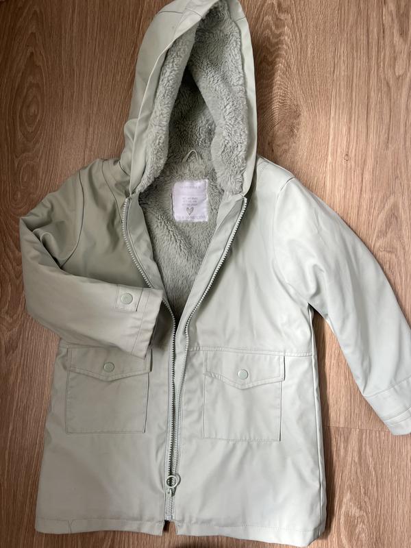 Утеплений осінній плащик в ідеальному стані, довжина 56см, пог 40 см, рукав Від плеча 41,5 см, є малопомітний нюанс на капюшоні - маленька чорна смужка, виводити не пробувала