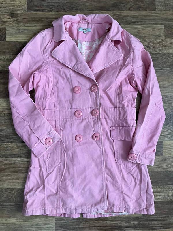 Стильний плащ для дівчинки 12 років 100% - котон 100% - поліестер Заміри : Довжина - 86 см Під рукавами - 48 см Внутрішня довжина рукава - 44 см Довжина від мишки до низу - 59 см Довжина рукава - 60 см Плече - 12 см Ширина по низу - 56 см Талія - 44 см
