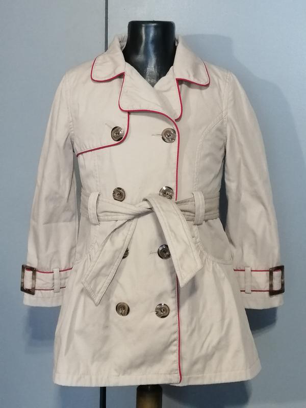 Класний плащик на дівчинку р. 128. Довжина 61 см, ширина під руками 37 см, рукав від плеча 43 см, плечі 30 см, пояс 35 см.