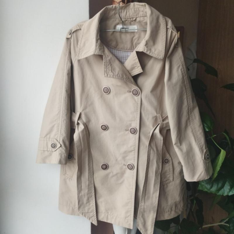 Дитячий плащ в ідеальному стані. Розмір 116, 60 %бавовна. Довжина 58,рукав від коміра 47,ОГ 76. Пояс,кишені.Підкладка бавовна. Із нюансів немає одного гудзиках під коміром,але можна пережити той,що з другої сторони.