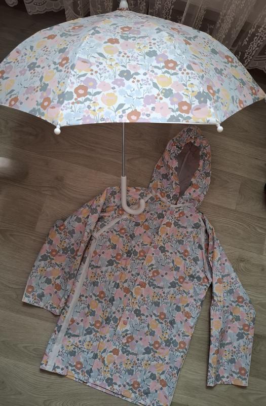 плащ з парасолькою,весняний принтпо бірці М,по замірах на 5-7 років. Стан нового.,без будь-яких дефектів. довжина 60 см ширина 43 см рукав від шеї 58 см парасолька довжина 60 см деаметр 80 см