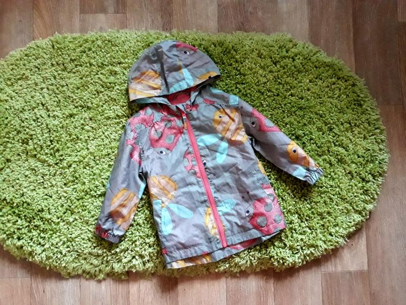 Дуже красива яскрава куртка-дощовик фірми Next. Розмір 12-18 місяців,на ріст 86 см,буде довше.Стан ідеальний,як нова. Зовні щільна водовідштовхувальна тканина не промокає,всередині коттоновая підкладка. Ззаду трохи подовжена.