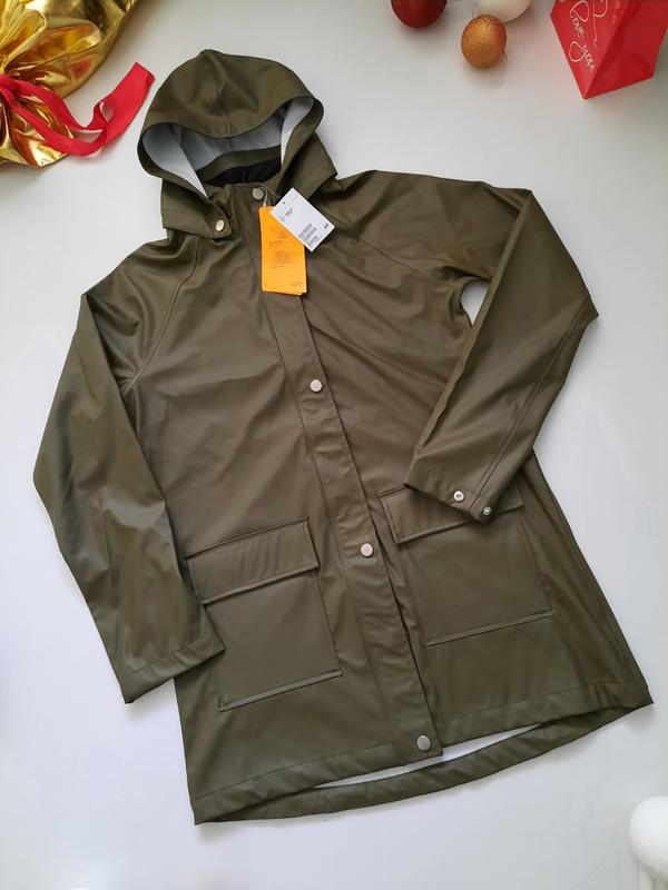 Стильний прорезинений, вітронепродувний, водовідштовхуючий плащ з капішоном. Всі шви плаща якісні та проклеяні, спереді два накладних кармана, застібається на замок і на кнопки, рукав регулюється кнопками, капішон відстібається на кнопках. Розмір- 158/164 Заміри: ширина в грудях 48 заг. довж. від горловини 75 довжина рукава від горловини 71