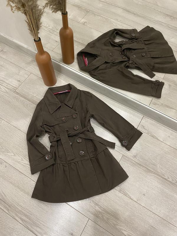 Модний дитячий плащ/ Трендовий шоколадний колір/ ,застібається на гудзики, є дві кишені спереду, є пояс,рукава довгі на них манжети середньої ширини,знизу широка рюшка) Підійде на 3-5 років/оріентуйтесь по замірах/ Довжина 53-54 см/ Плечі 28,5 см/ Рукав 35,5 см/ Пог 34 см/ Знизу 42 см/ Продається без повернення/ Коттон-льон – м'яка і важка тканина з чудовими гігроскопічними якостями, яка виготовлена з волокон льону і бавовнику. Без синтетики у складі сильно мнеться. Джинс коттон – стійка до усадки тканина на основі волокон бавовнику. Плащ Предмет верхнего платья и классического гардероба, одежда с рукавами, длинная или не очень, предназначенная для носки в дождливую, прохладную и ветреную погоду Коричневый получил своё название от слов «кора» и «корица». Это цвет тёмного дерева, благодатной почвы, осенних листьев, а ещё – шоколада. Коричневый цвет очень близок к земле, а потому сочетание коричневого цвета в одежде даёт ощущение стабильности, надёжности, благосостояния.