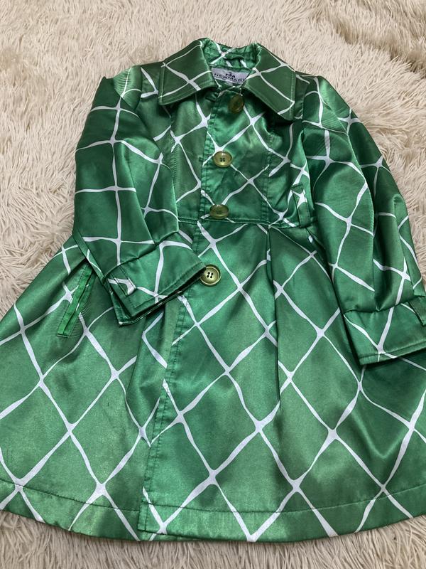 Плащ для дівчинки в ідеальному стані.Вказаний розмір 30 - років на 5-6. Рукав 40 см, довжина 62, в талії 30. Є поясок.