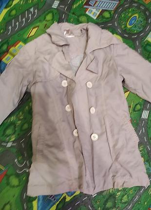 симпатичный плащик указан рост 110, цвет - бледно розовый, мелкая клетка, на подкладке, состояние отличное