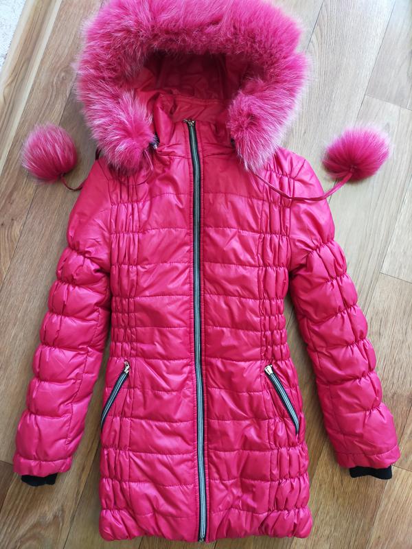Зимовий плащ на худеньку дівчинку, дуже гарно сидить на фігурі ПОГ 34 см в не розтягнутому стані, але добре тягнеться, довжина рукава 56 см разом з манжетом, довжина по спинці 70 см, капюшон відстібається хутро натуральне, всі замочки в робочому стані, тільки на кишенях відпали язички на фото показала, на застібання і растегивание кишень не впливає. Верх плащівка водооталкивающая. З дефектів плямочка на внутрішній стороні рукави, при носінні не помітно