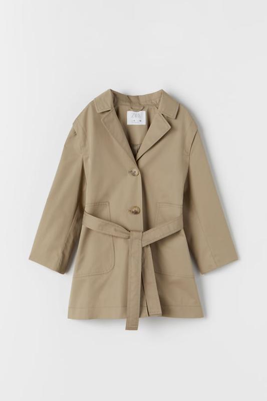 БАЗОВИЙ ТРЕНЧ Тренч з довгими рукавами і коміром. Застібка на гудзики, регульований пояс. Передні кишені. РУДУВАТО-КОРИЧНЕВИЙ 10 РОКІВ (140 СМ) Довжина 74 см Плечі 39 см, Рукав-50 см Ширина під рукавами 45 см ЗОВНІШНЯ ЧАСТИНА 100% БАВОВНА