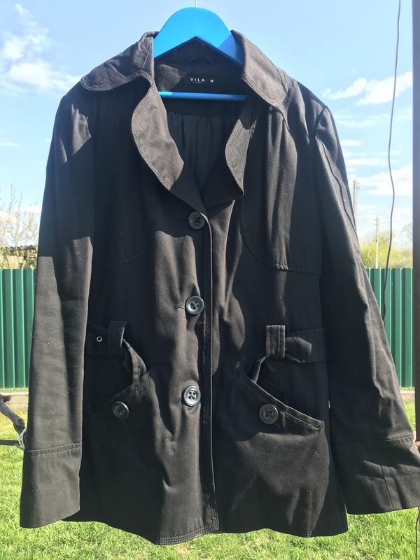 Чёрный тренч размер S но пишет М. Замеры длина 66-67 см, рукав 60см. Цвет классический чёрный камера не передала.