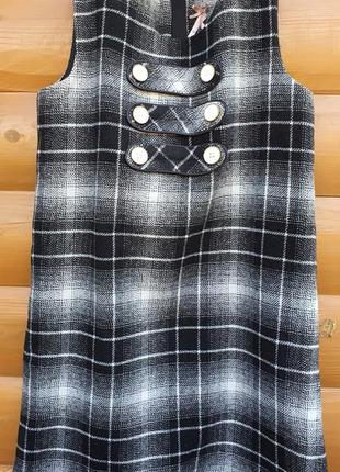 Продам платье-сарафан Next Ткань мягкая, приятная к телу. Отлично подойдёт в школу. Сзади на змейке , с подкладкой Сарафан подойдёт на холодную погоду, т.к. в составе шерсть Размер на рост 140, на 10л Замеры: длина от плеча 72см, ширина плеч 29см, ширина пройма в плечах 18см, пог 36см, пот 39см, поб 41см