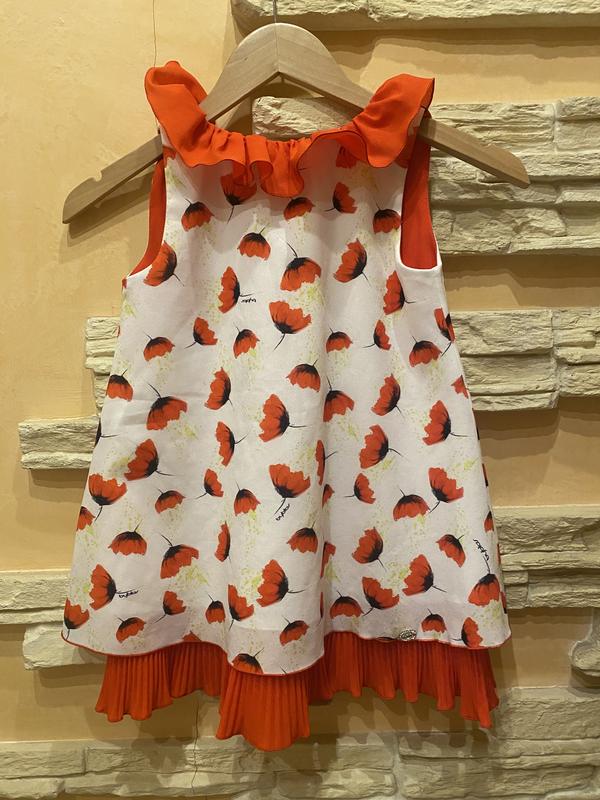 Яскрава сукня в квітковий принт (маки) без нюансів та дефектів, в ідеальному стані. На 4-5 р. Довжина 56, у грудях 34.