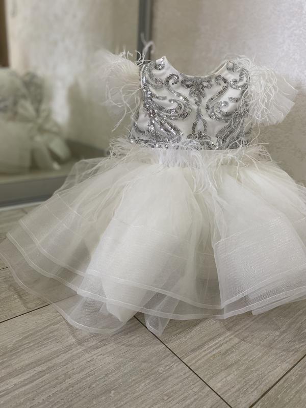 Шикарне плаття з пір'ям ручної роботи. Для дівчинки яка буде виглядати ангелом на свій перший рочок.