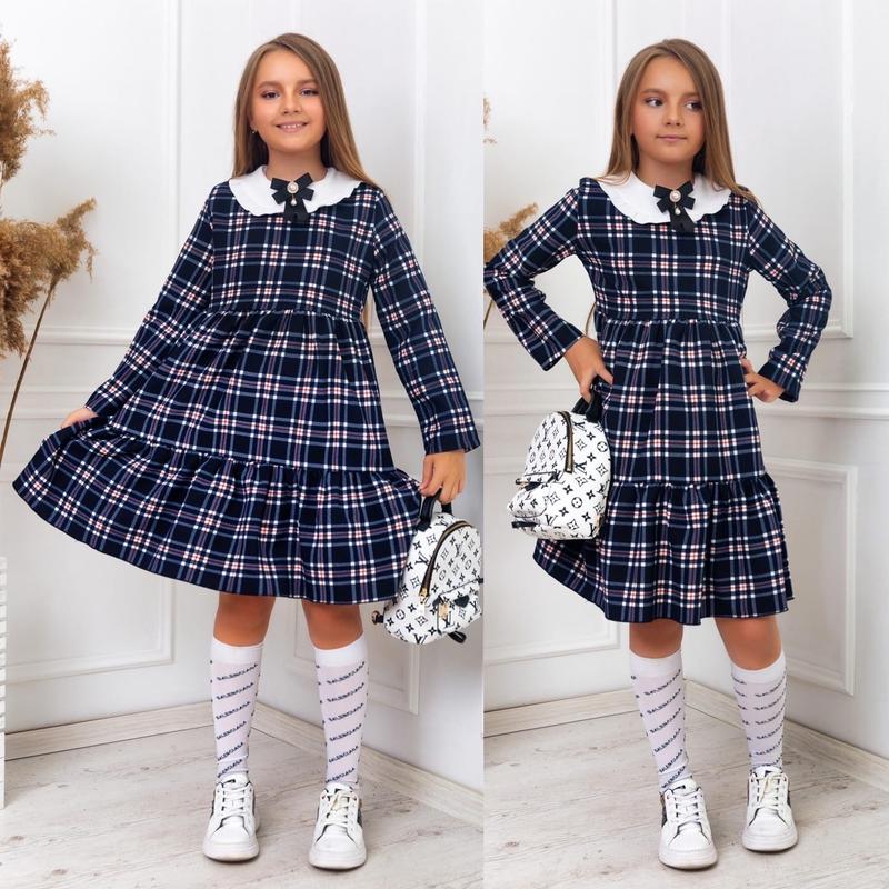 Сукня арт. sev. 706 Ціна дроп/опт: 560 грн Розміри: 128, 134, 140, 146, 152 Тканина: креп костюмний Туреччина Фурнітура: брошка. Стильна шкільна сукня з білим мереживним комірцем виготовлена з костюмної тканини. Завдяки розкльошеному фасоном добре сидить на худеньких дівчатках, і на дівчатах з формами. Сукня арт. sev. 706 Ціна дроп/опт: 560 грн Розміри: 128, 134, 140, 146, 152 Тканина: креп костюмний Туреччина Фурнітура: брошка. Стильне шкільне плаття з білим мереживним комірцем виготовлено з костюмної тканини. Завдяки расклешенному фасоном відмінно сидить на худеньких дівчаток, і на дівчат з формами. 📩