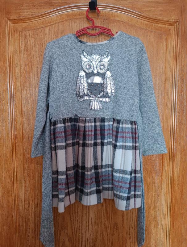 Тепла сукня на зріст 116 см в ідеальному стані. Довжина 55 см, рукав 35,5 см, груди 33 см. Позаду фіксується поясом.