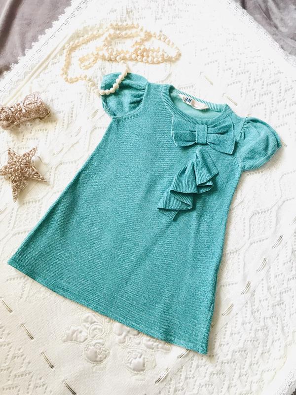 Бірюзове платтячко для дівчинки H&M з люрексною ниткою. Стан ідеальний. Розмір вказаний 92 (1,5-2 роки). Довжина по спинці 45 см. ПОГ 28 см. Дод. фото та заміри на вимогу.