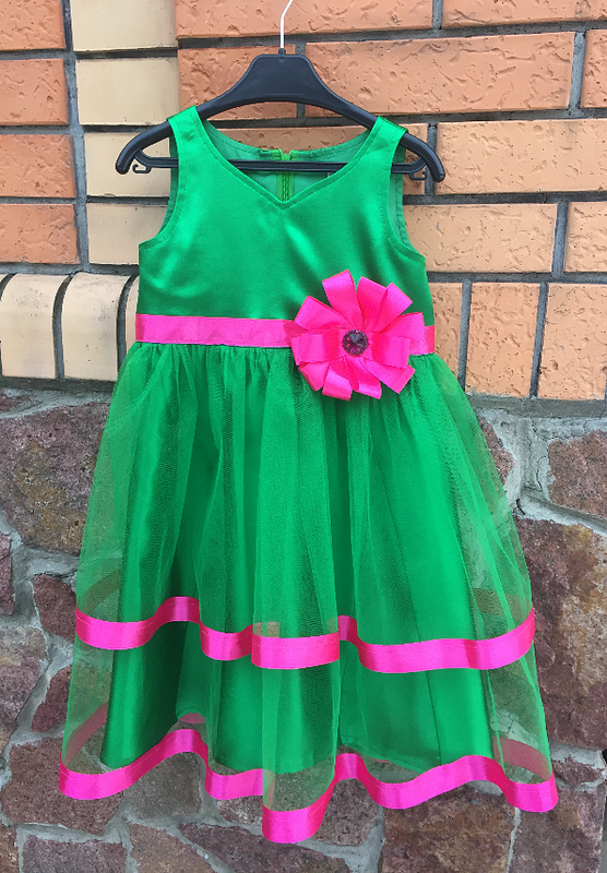 Цікаве святкове #плаття з #атласу і #фатіна, прикрашене квіткою з стрічок. Фатін середньої жорсткості (тримає форму), підкладка 100% віскоза. Обхват грудей 32 см, довжина 68 см До плаття входити зразок тканини. Плаття в одному єкземплярі.
