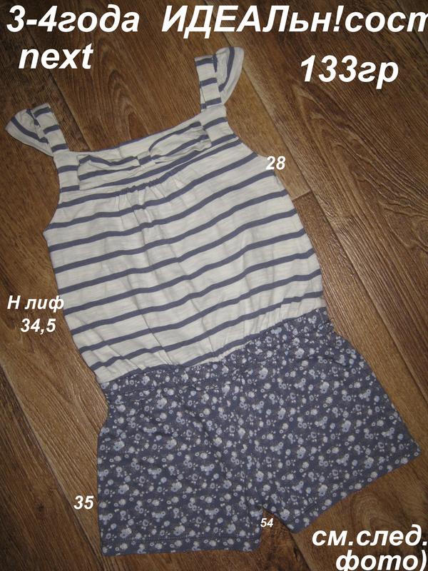 Ромпер в прекрасному стані від next, 3-4 роки (бирка). БЕЗ!нюансів, б/дефектів. ОБОВ'ЯЗКОВО! дивіться виміри і додаткове фото. Приємних покупочек) Рекомендую дивитися всі мої оголошення. В наявності ЩЕ БАГАТО речей!