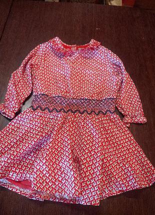 Веселе сукня для дівчинки. Довжина 50 см, плечі 22см. рукав-29 см, ПОТ 25 див. В талії на резинці.