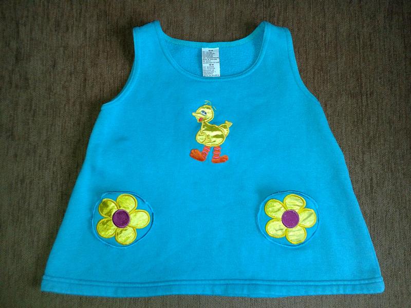 Сарафан для дівчинки 1,5 року Склад 80% бавовна, 20% поліестер Довжина виробу від бретелей до низу 37 см Довжина виробу від шиї по спині 35 см, з бретельками 38 см Підлозі обхват грудей 32 см Кишеньки у вигляді ромашок.